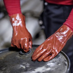 Γάντια PVC κόκκινα, 2πλης εμβάπτισης, μήκους 35cm με βαμβακερή επένδυση, πλήρως επικαλλυμένα.EN 3884121XEN ISO 21420..